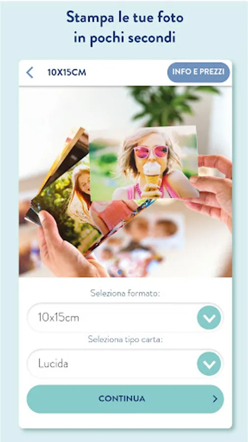 Print in seconds the photos saved in your mobile phone or from your social profiles on real photographic paper, create posters or print photo books in high quality!