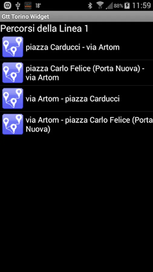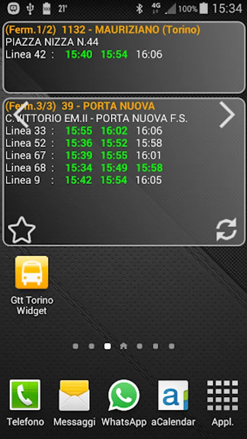 Using the function of quick reference, launching GTT Torino as a normal app, you do not need to configure a widget, for the steps in stop searching:
