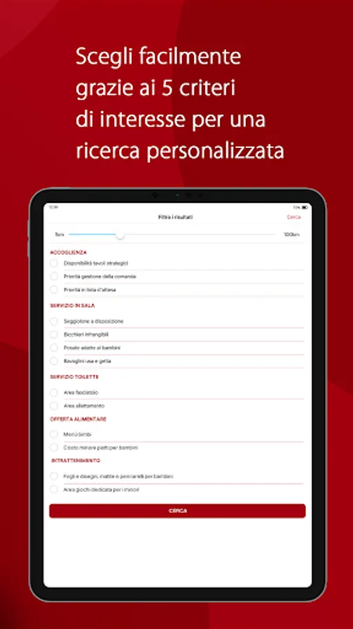 By activating the personalized search and selecting the evaluation criteria of greatest interest to you, you can carry out a highly personalized search and find the place that best reflects your needs.
