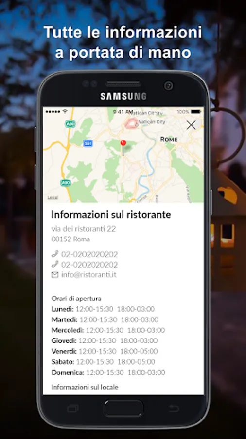 Book your table online in a simple and fast with the app of Villa Augusta. Enjoy your meal!