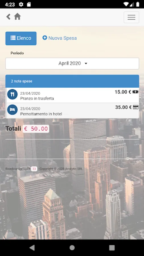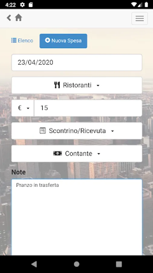 Part of the RoadWarrior family to support the corporate workforce, the NoteSpese application allows an innovative approach to the tracking and reporting of expenses incurred: just fill in the slips, immediately take photographs of receipts and tickets, and send everything directly to the accounting office. In this way, you can say goodbye to the monthly reports to be filled in, looking for lost receipts, preparing envelopes with all the tickets to be physically delivered to the office.