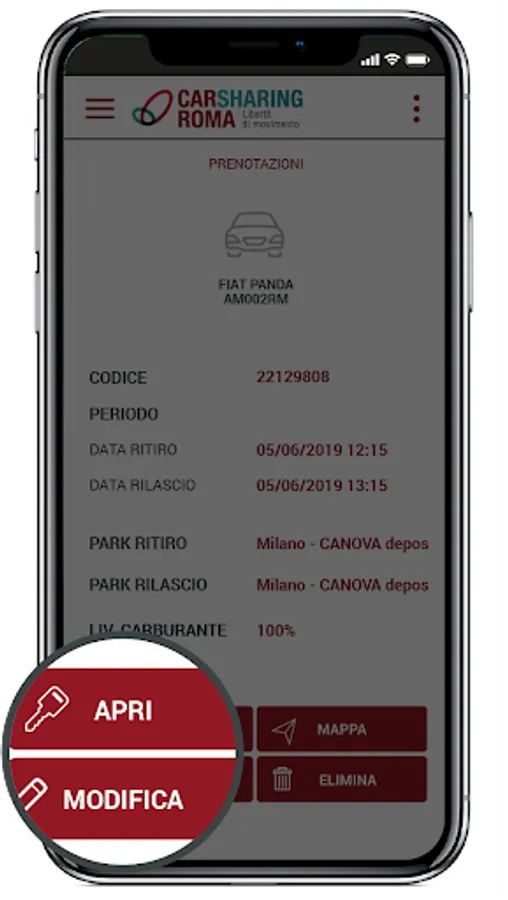 Furthermore, using the Car Sharing Rome app during the trip you can: