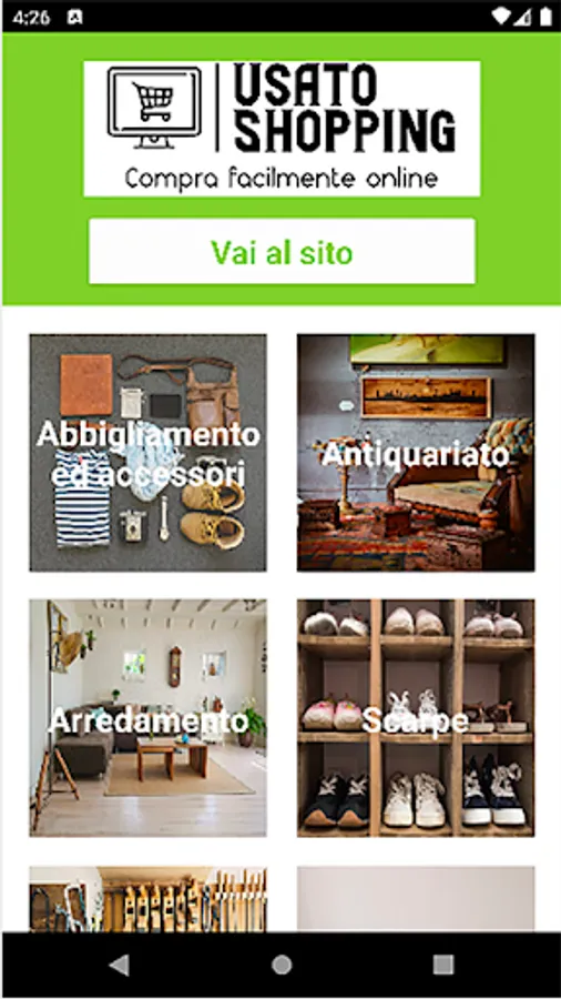 This app allows quick and immediate access to the functions of the Used Shopping website