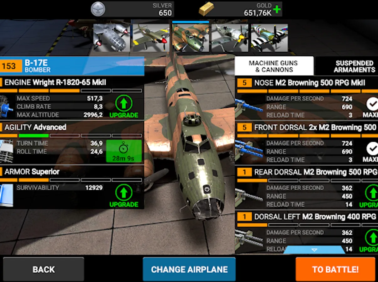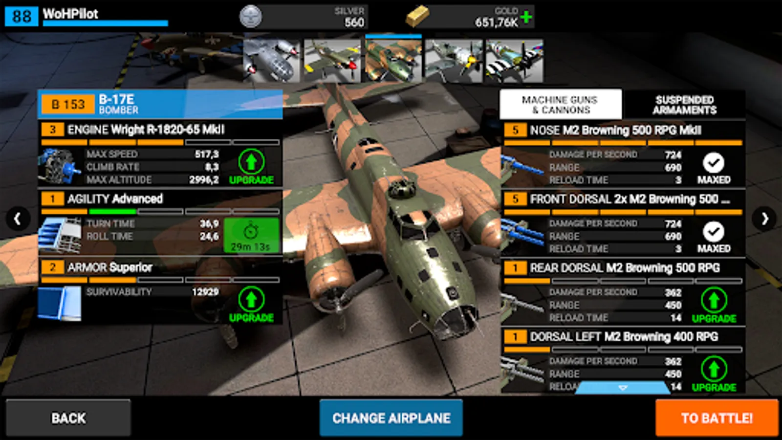 🔧Airplane games are all about customization and our WW2 flight simulator offers dozens of upgrades! Armor, engine, armaments, fuselage... The list is long and it’s up to you if you want to pilot and fly a slower but unstoppable bomber or a deadly raiding fighter. Remember though - each airplane requires different air combat skills!