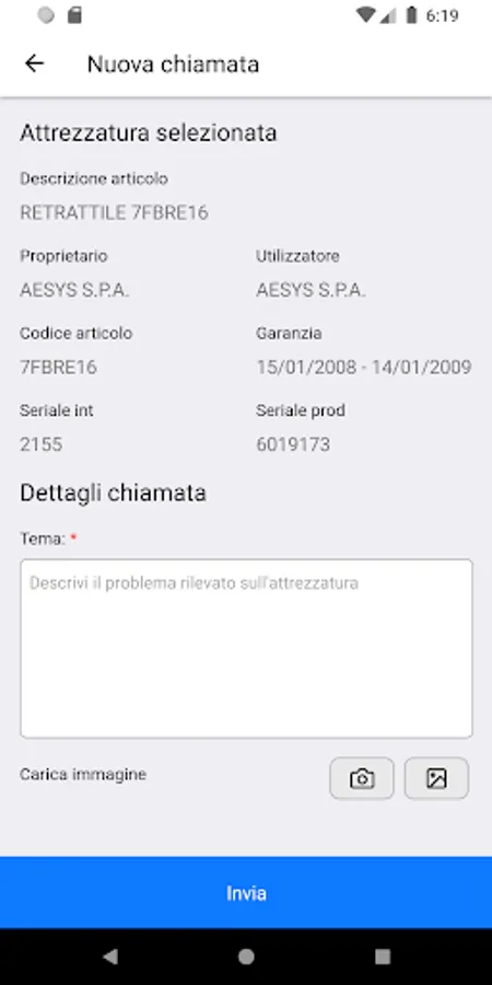 The application allows the independent creation, by a technician or user, of service calls managed and managed by SAP Business ONE and the ServiceONE AddOn. The user is authorized to recognize the non-functioning equipment by reading the relative BARCODE and has the right to describe the problem for which the opening of a service call is required. Through the application it is possible to monitor the feed-back relating to the progress of the open service call up to its resolution and closure.