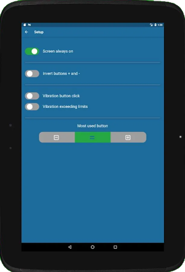 Through the configuration panel it is possible to set the size of the keys, the vibration and the energy saving mode.