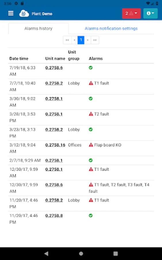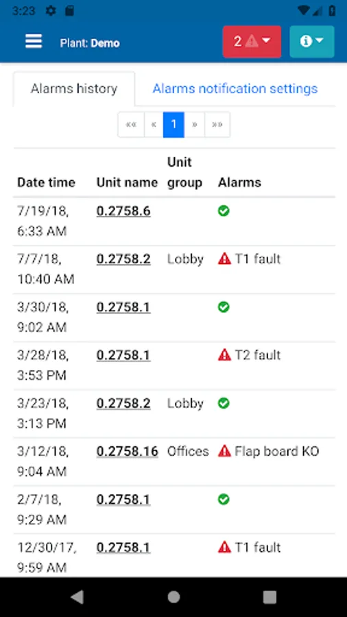 - View all alarms
