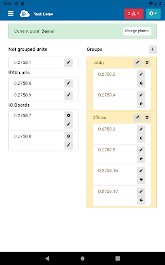 - View and edit the status of all units in your plant