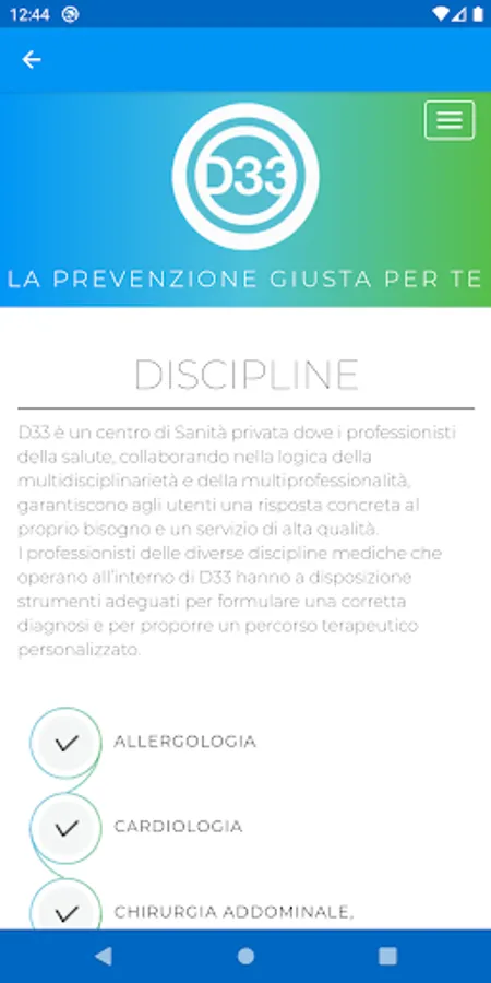 D33 is an authorized medical health center, able to combine minimum waiting times and maximum professionalism.