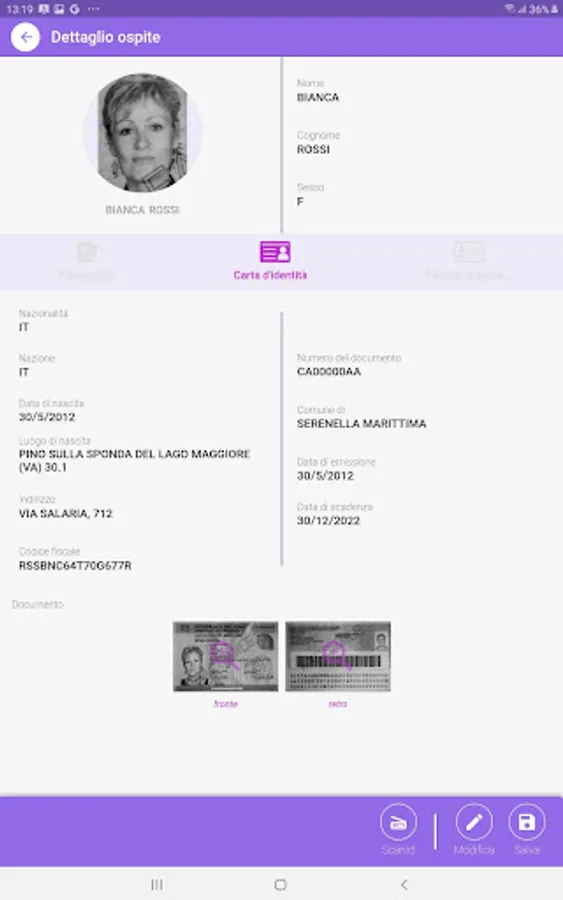 L'App acquisirà un'immagine in alta risoluzione del documento scansionato e compilerà automaticamente i campi con i dati richiesti