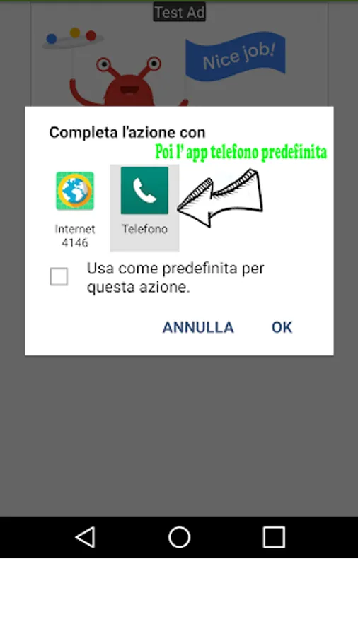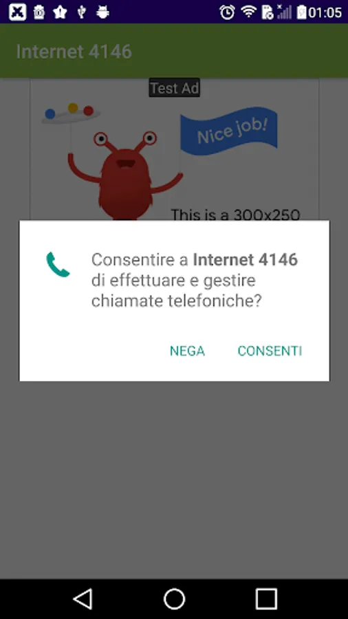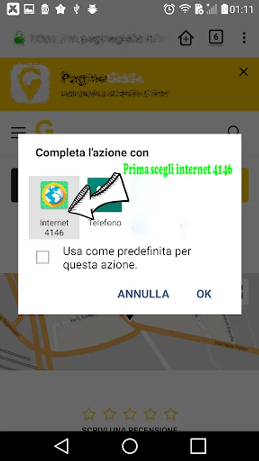 Press on number choose internet 4146 on the screen then choose the default phone app, at this point you will find yourself with the prefix 4146 and the suffix, 1 attached to the number and you just have to send the call.