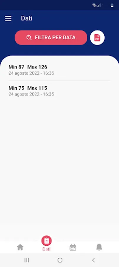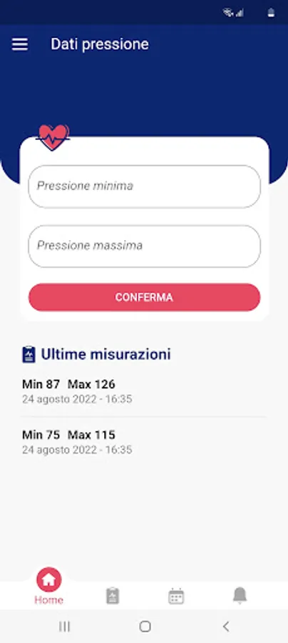 The MyPressione App is a useful and easy-to-use diary for recording daily blood pressure measurements. The measurements recorded over time can be consulted at any time in the relevant section, and can be filtered by date.