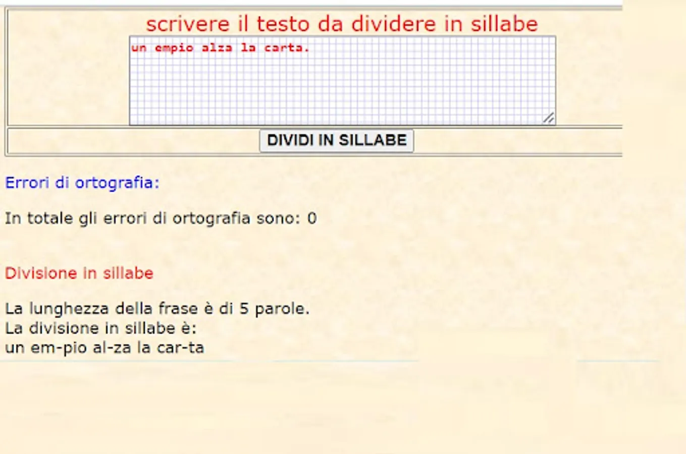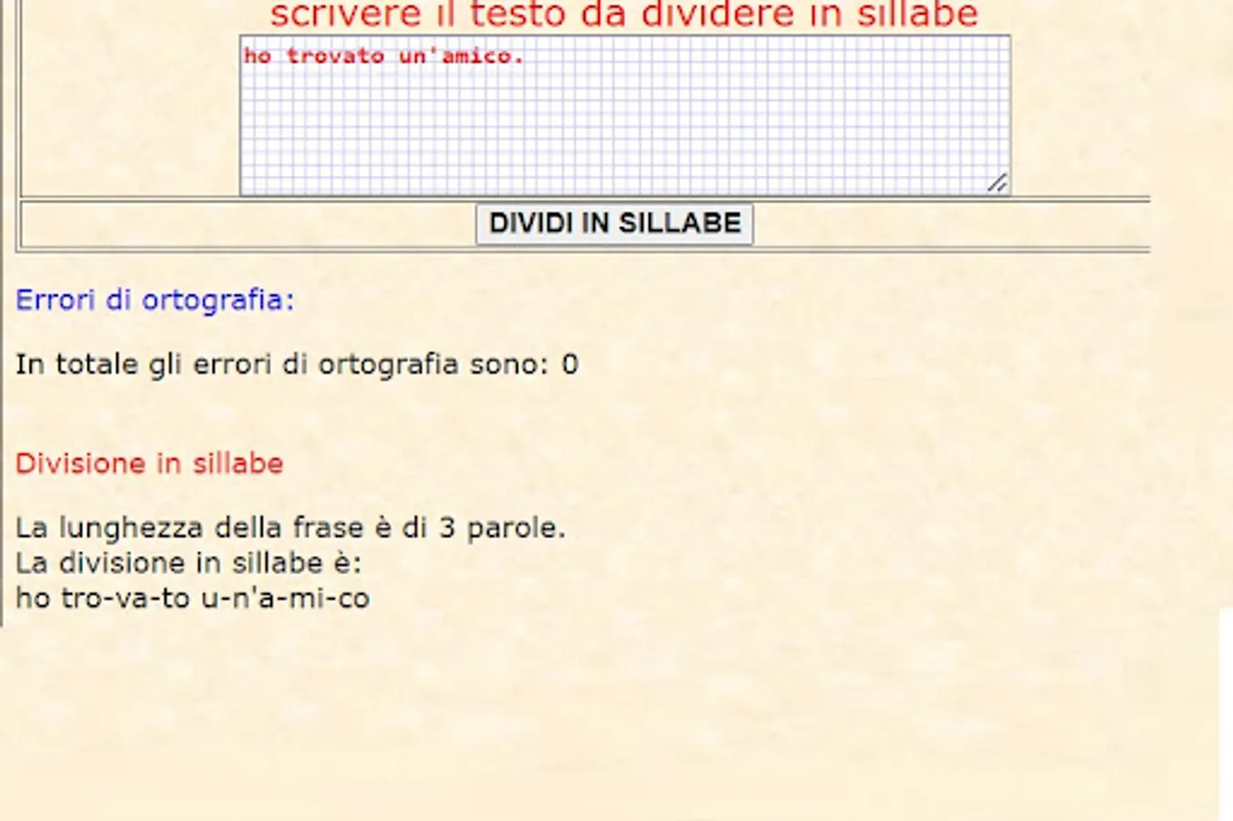 La sillaba è composta o da una sola vocale o da una vocale unita ad una o più consonanti. Se trova due consonanti doppie le separa con un trattino.