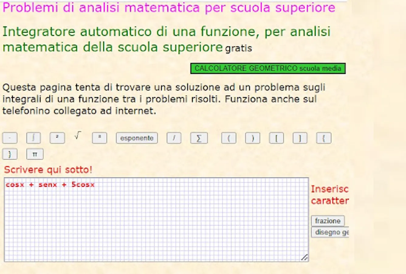 Questa applicazione calcola immediatamente e gratis l'integrale di una funzione.