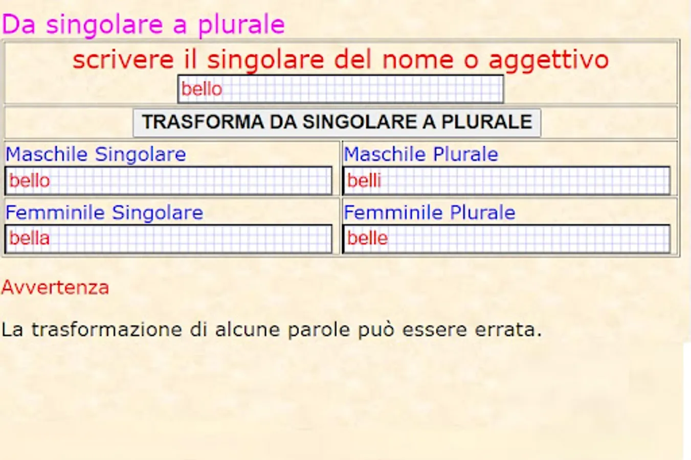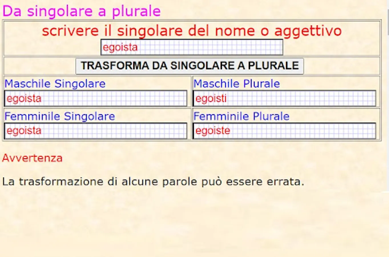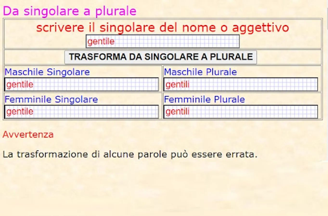 Se viene scritto un aggettivo al singolare maschile lo trasforma sia in maschile plurale. sia in femminile singolare, sia in femminile plurale.