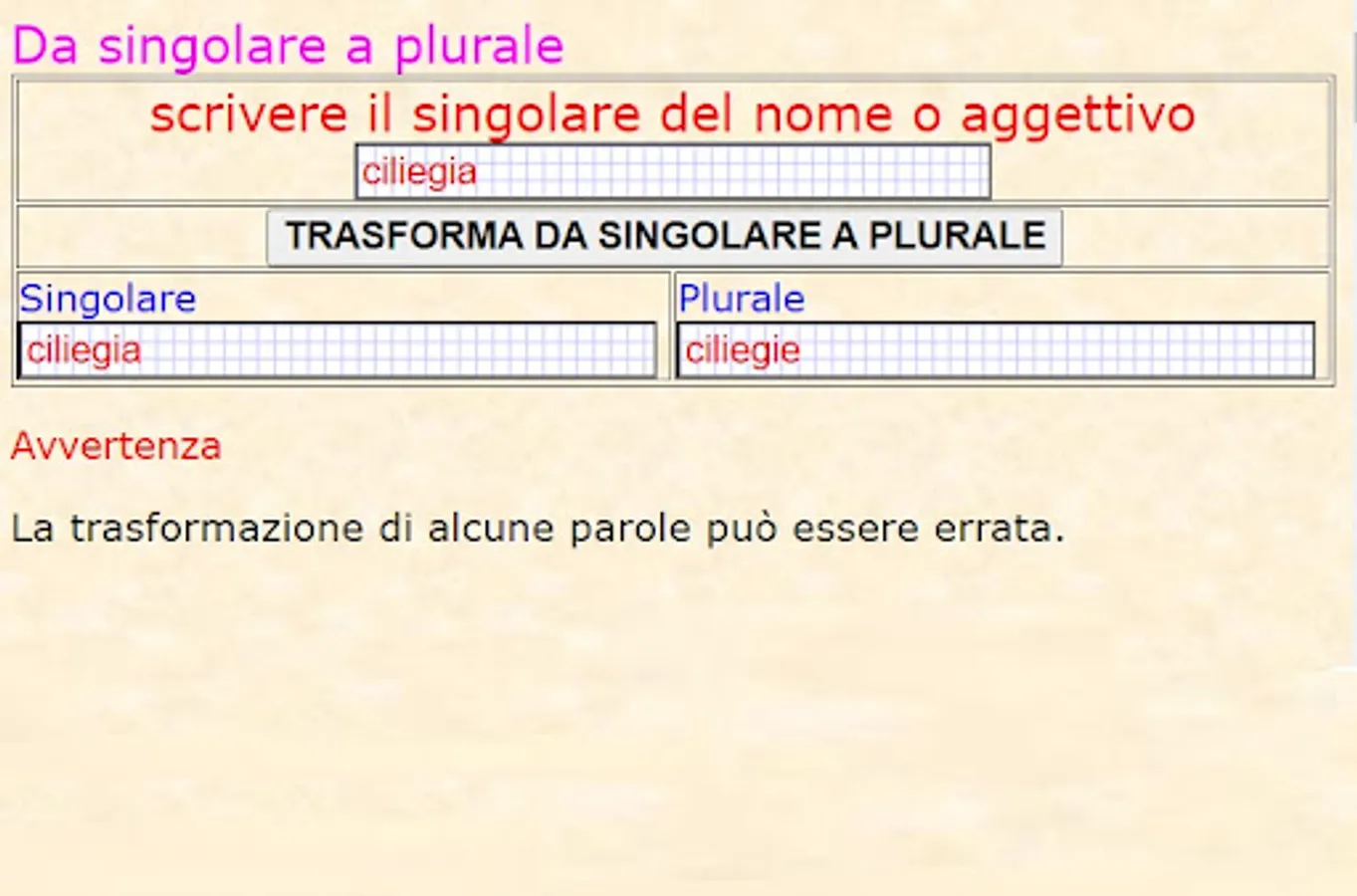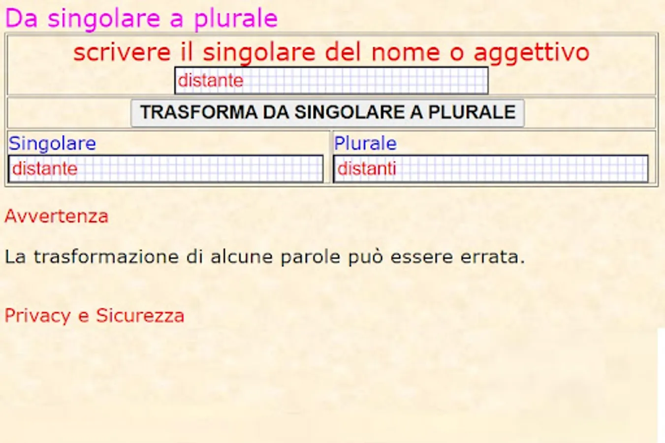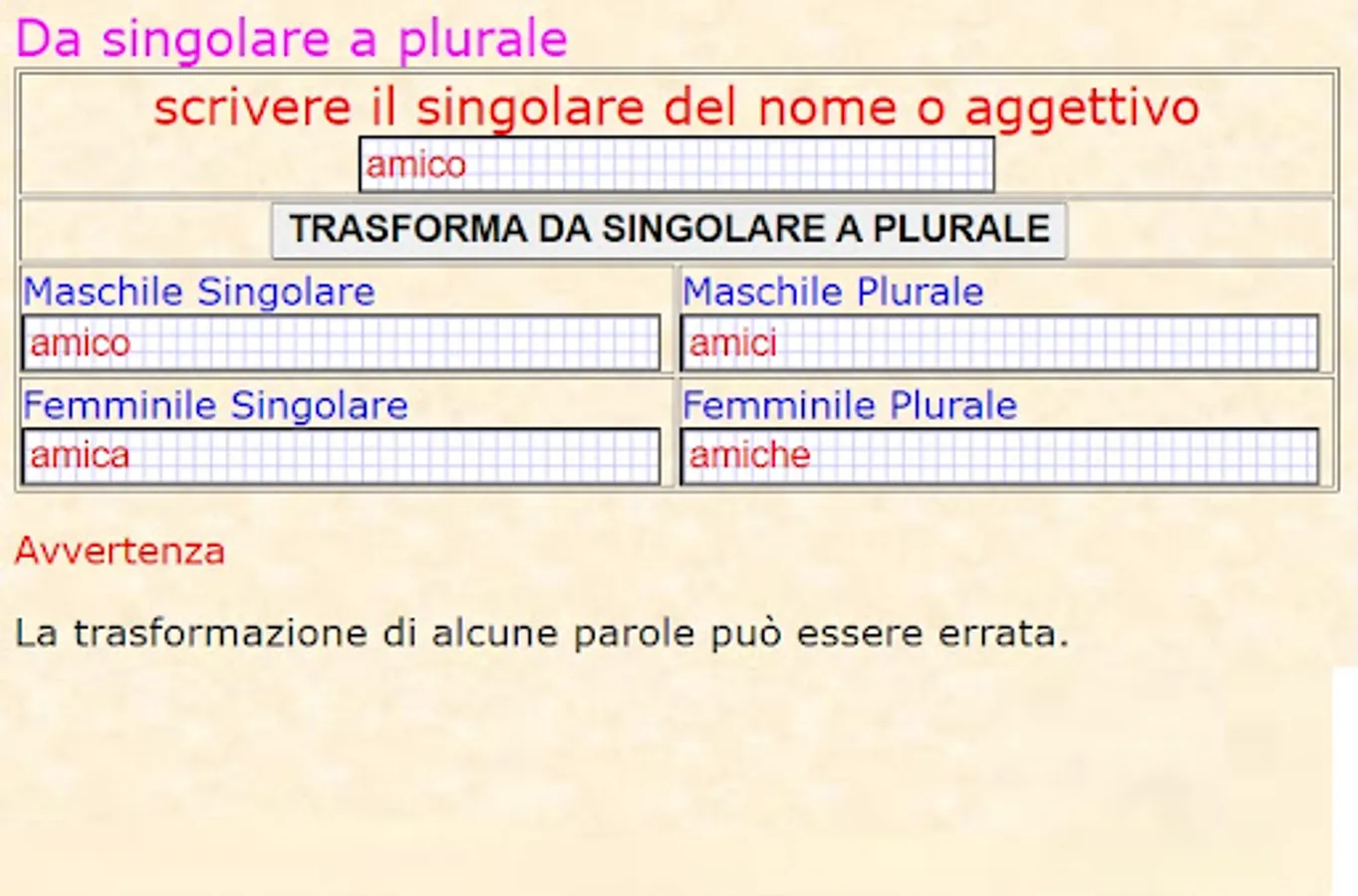 Trasforma un sostantivo da singolare a plurale, sia esso maschile sia esso femminile.