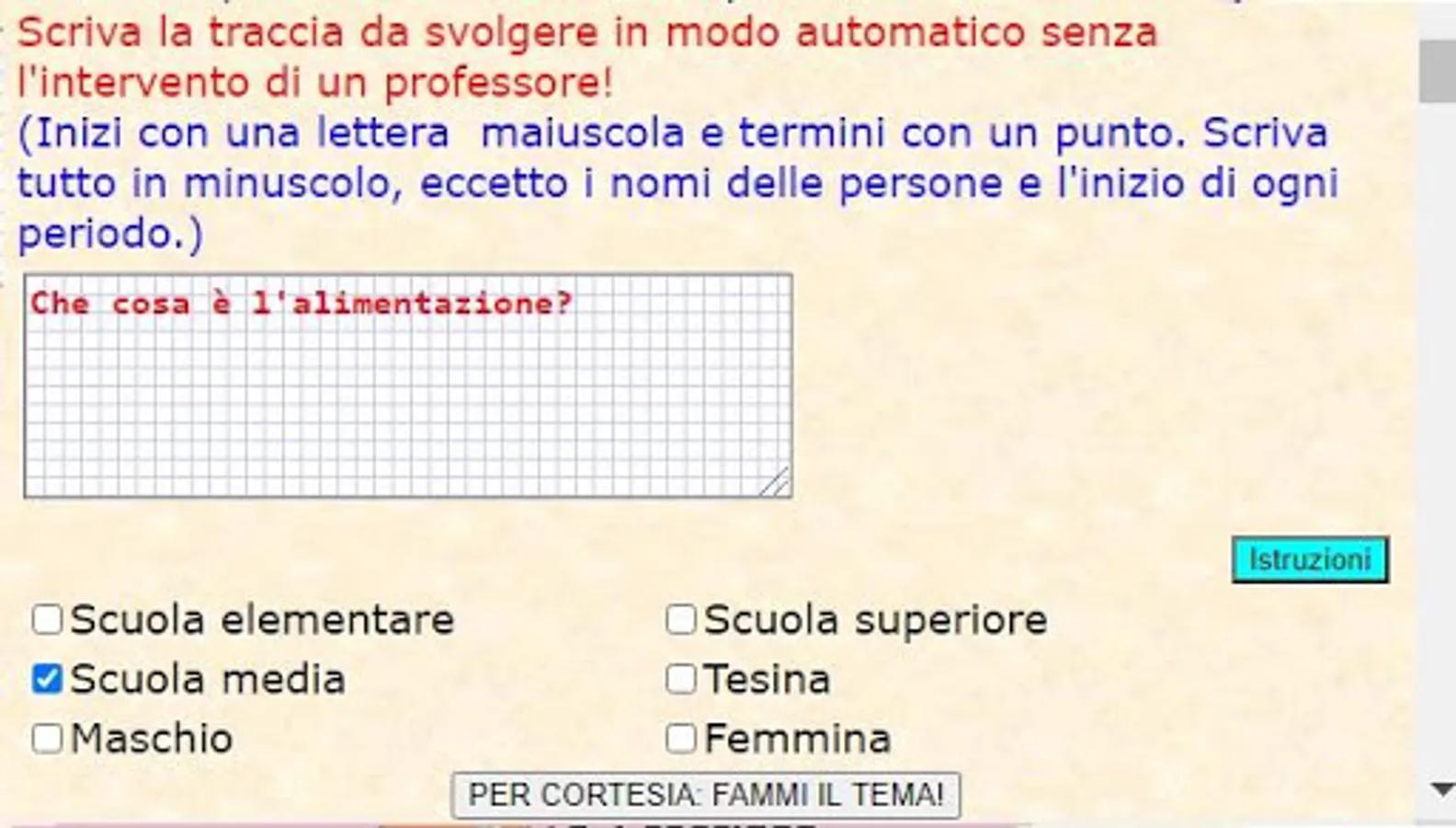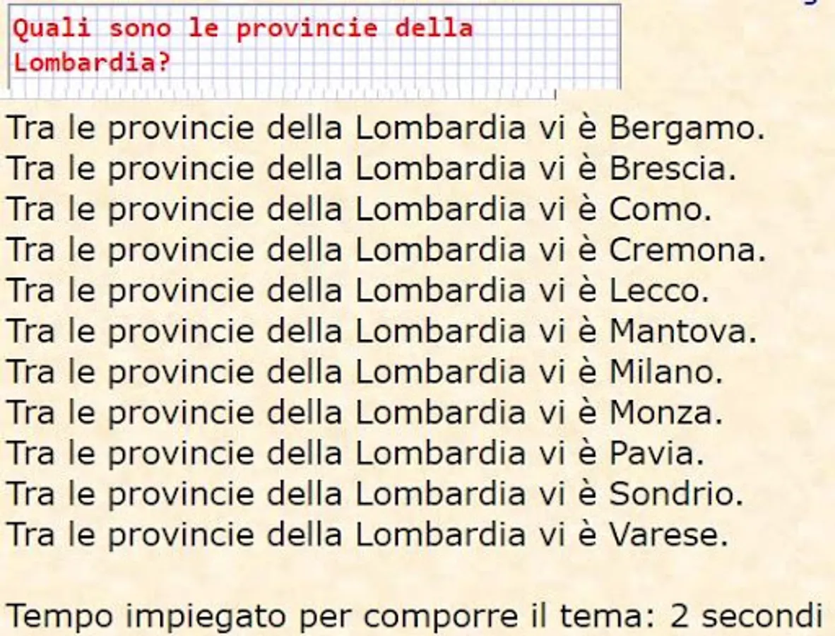 Questions of Italian, questions of history, questions of geography. You can also ask for the development of an entire theme or a description.