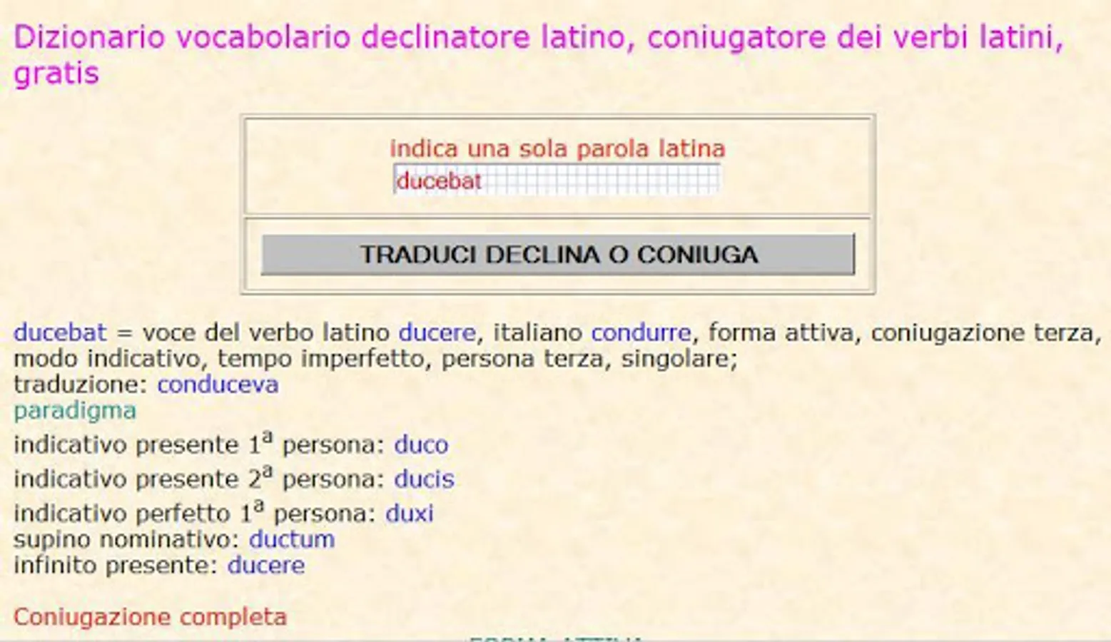 Latin dictionary with over 150,000 words; free and without advertising; not necessary to know the initial paradigm, that is the root from which a noun or a verb, because just write any Latin word, for example: "ducebat" and you get it now: