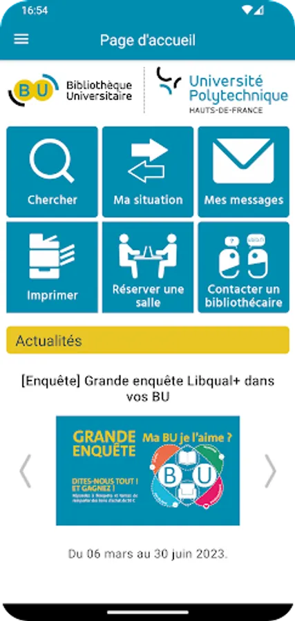 BU UPHF is the mobile application of the libraries of the Hauts-de-France Polytechnic University.