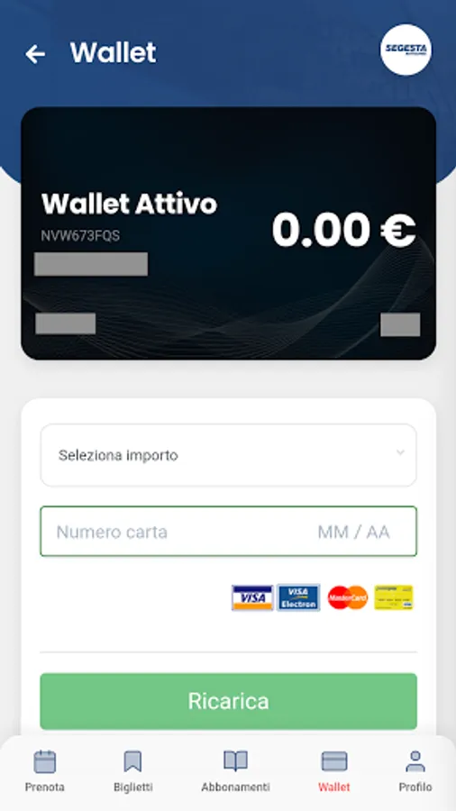 2. Associate the Segesta subscription card and you will be able to purchase and modify your subscription.