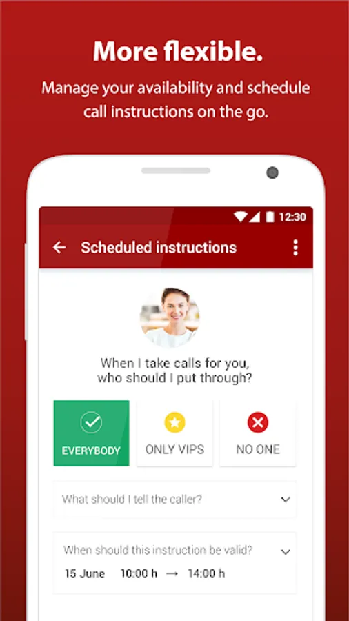 Segretaria24.it is a virtual secretary service for small and medium companies. We take your calls 24/7, 365 days a year. Via the Segretaria24.it app you can set up how your secretary should handle your calls on the go. Leave directions quickly, schedule call instructions on your agenda or adjust your availability even on short notice.