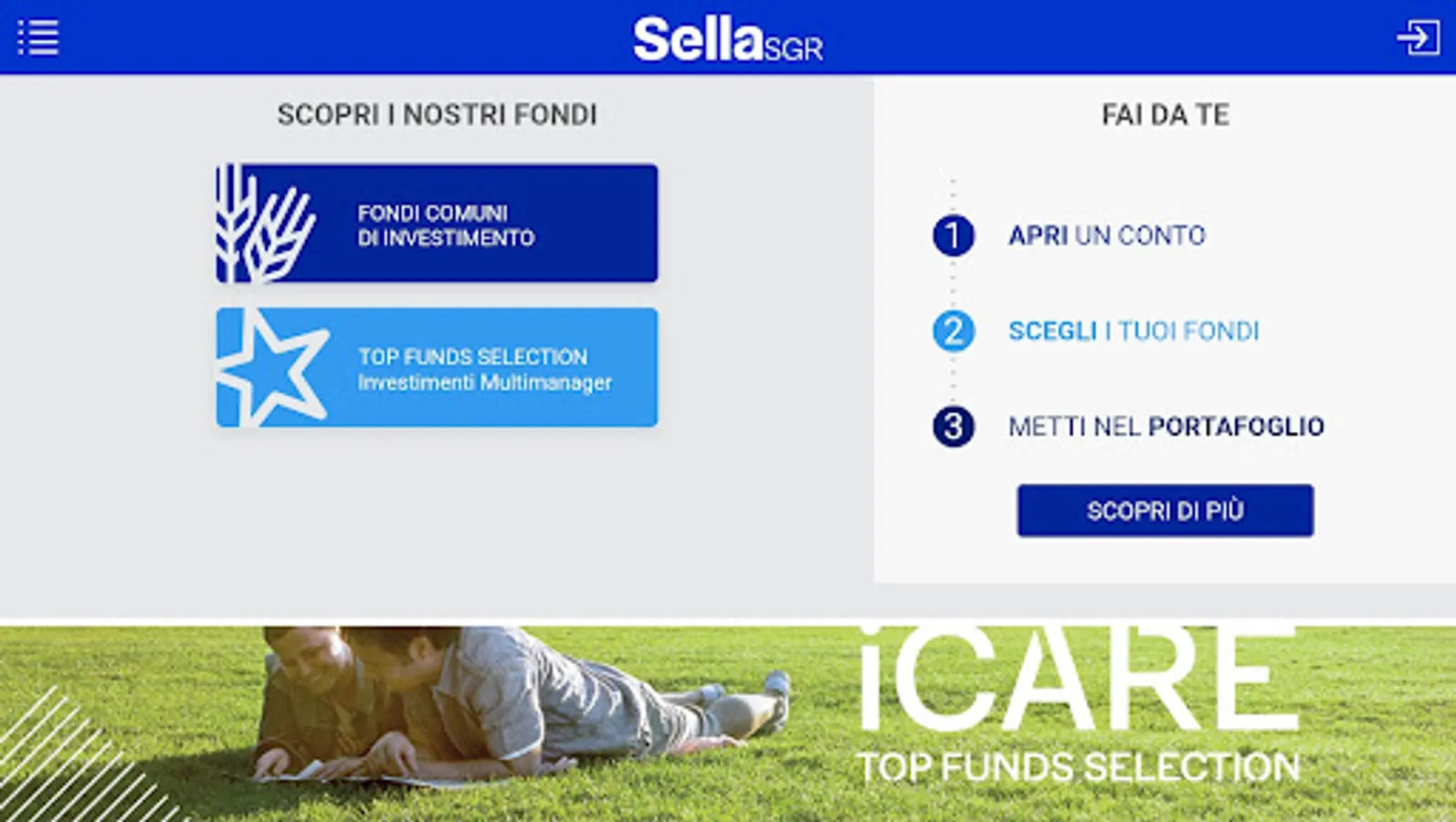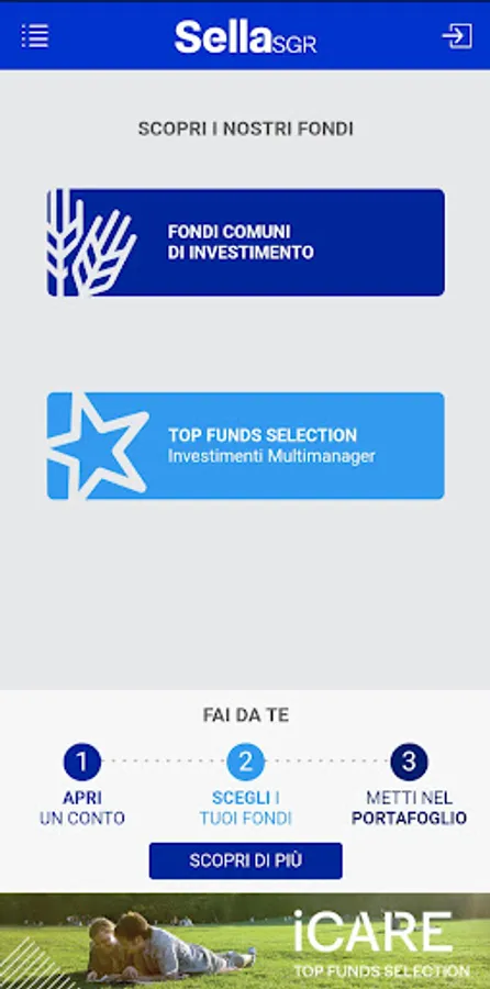 The application is dedicated to Sella SGR products that can be purchased directly from the end user without the need for intermediaries (Execution Only).