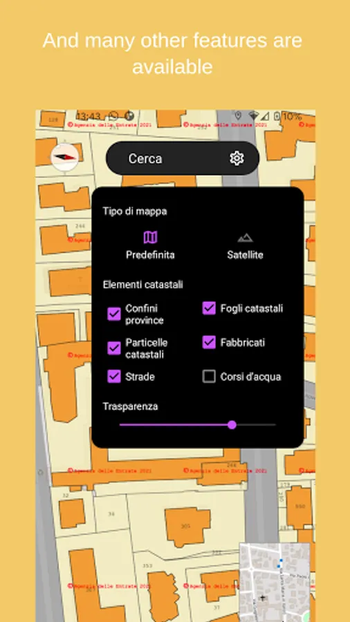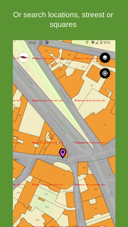 The service is based on the official cadastrial map of the 'Agenzia delle entrate'. All the regions are supported except the provinces of Trento and Bolzano.