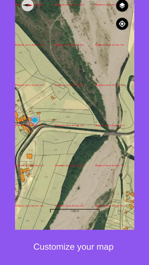 Use the GPS signal to place your position on the map and look around you. It's the ideal to check the borders of your fields, woods, or buildings.