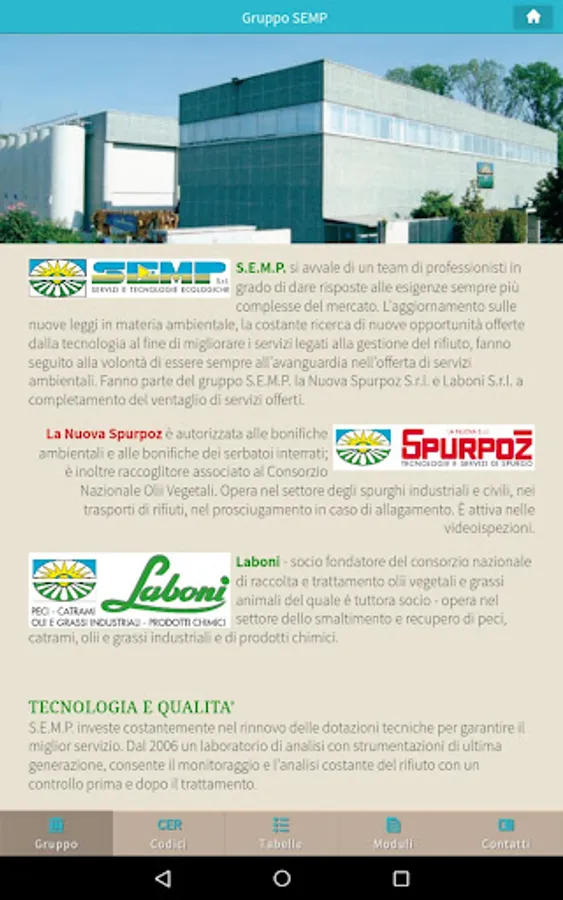 European Waste Code made by SEMP Ltd; The App has the EWC codes with an integrated search engine, standards and tables of waste and limit values and a confidential service to its clients for the management and provision of logistics
