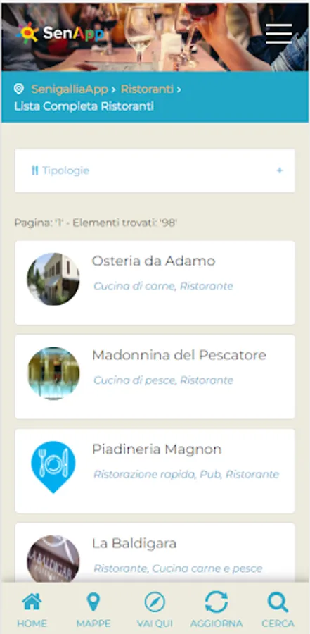 L'app mette a disposizione informazioni per la ricerca di Ristoranti, Bar, Hotel e i parcheggi presenti nella città di Senigallia