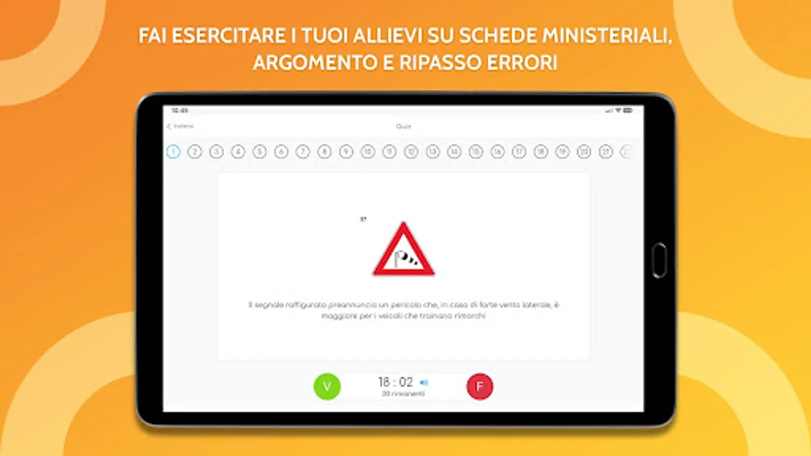 With the La Nuova Guida Quiz Aula app, students can practice all the ministerial quizzes in class, logging in with their Quiz Patente student code!