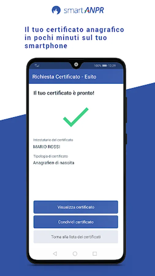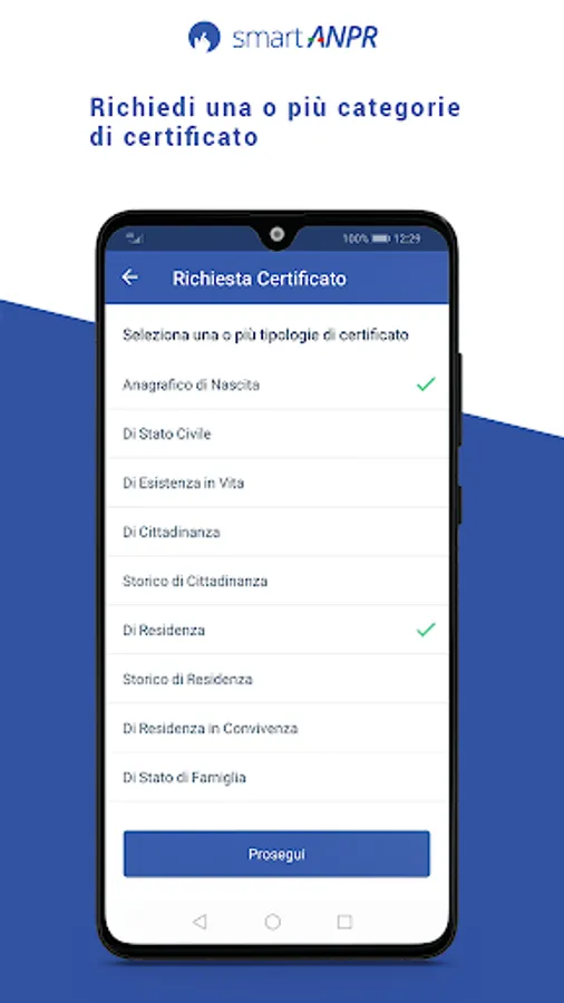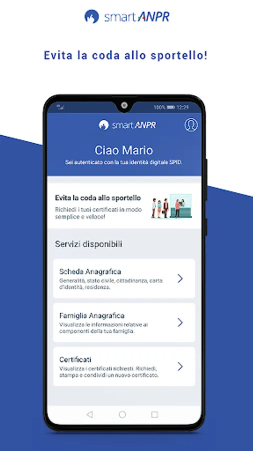 The application natively interfaces with the ANPR database, the National Resident Population Registry and issues certificates with legal validity.