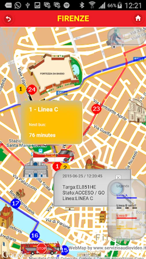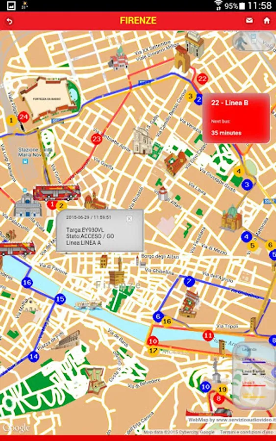 MOVE with the help of an interactive map of the city where you will see all the routes and stops of the red open-top City Sightseeing buses, the actual spot where you can find the buses and YOUR position. It will be so easy to find and reach the nearest bus stop and estimate the time of arrival of the next bus. The map also highlights the main places of interest near the stops and departure points for day trips out of town.
