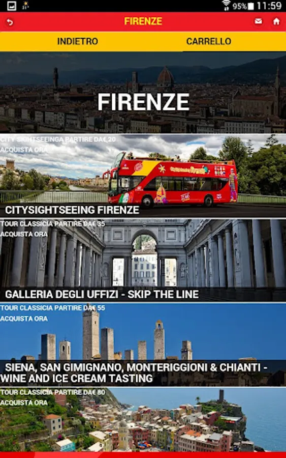 Sightseeing Experience APP is a map to move from one place to another, a shop where you can buy tickets and day trips to the main Italian attractions, but it is also a guide to get to know the city.