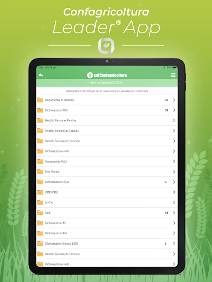 Confagricoltura Leader © App is the application aimed at taxpayers for the management of the Tax Drawer of CAF Confagricoltura customers. Sending documentation for tax and social security obligations to the Caf from home or from your office has never been easier, as has receiving the communications and documents produced directly by Caf Confagricoltura.