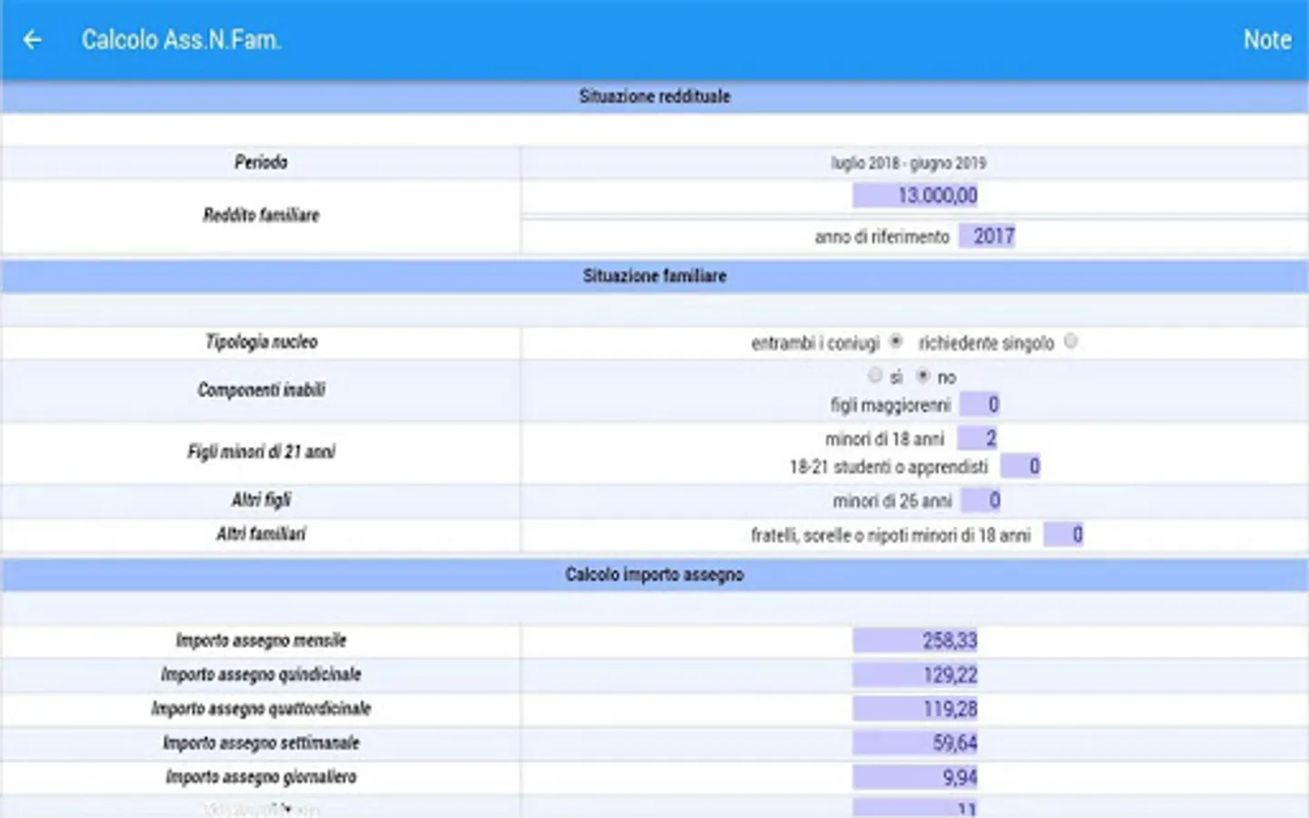 This application allows you to determine the monthly, fortnightly, fortnightly, weekly and daily amount of the allowance for the family unit of employees and holders of benefits paid by the compulsory general insurance, based on the data provided by the user in reference the period of validity, income and composition of the family unit.
