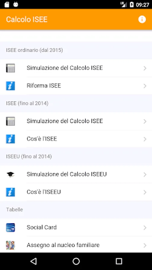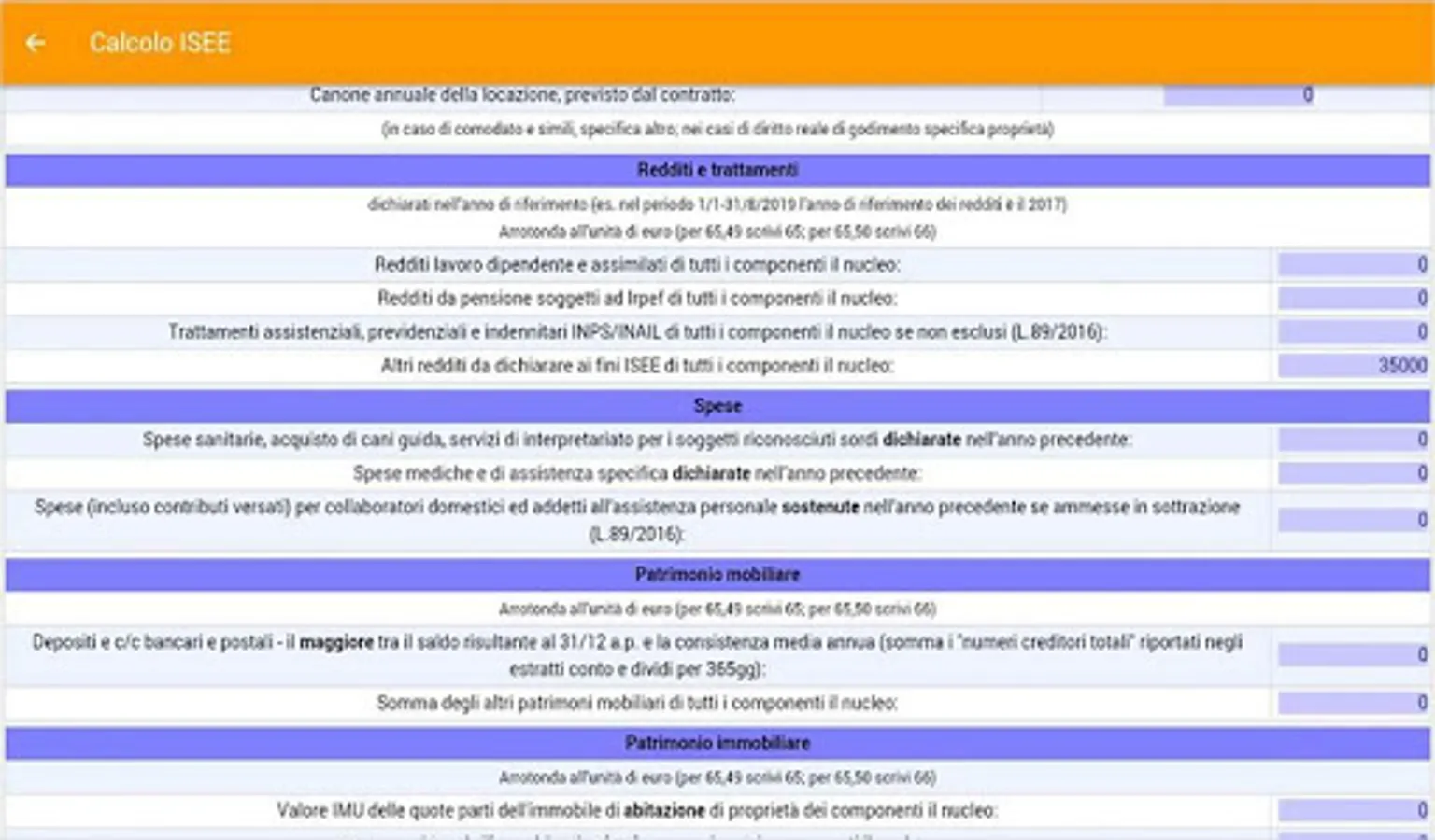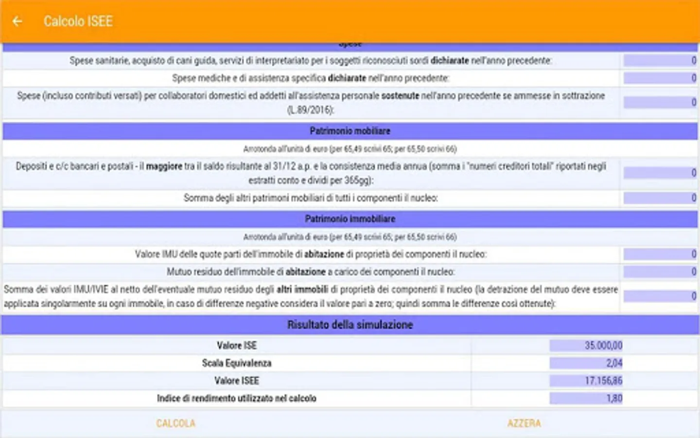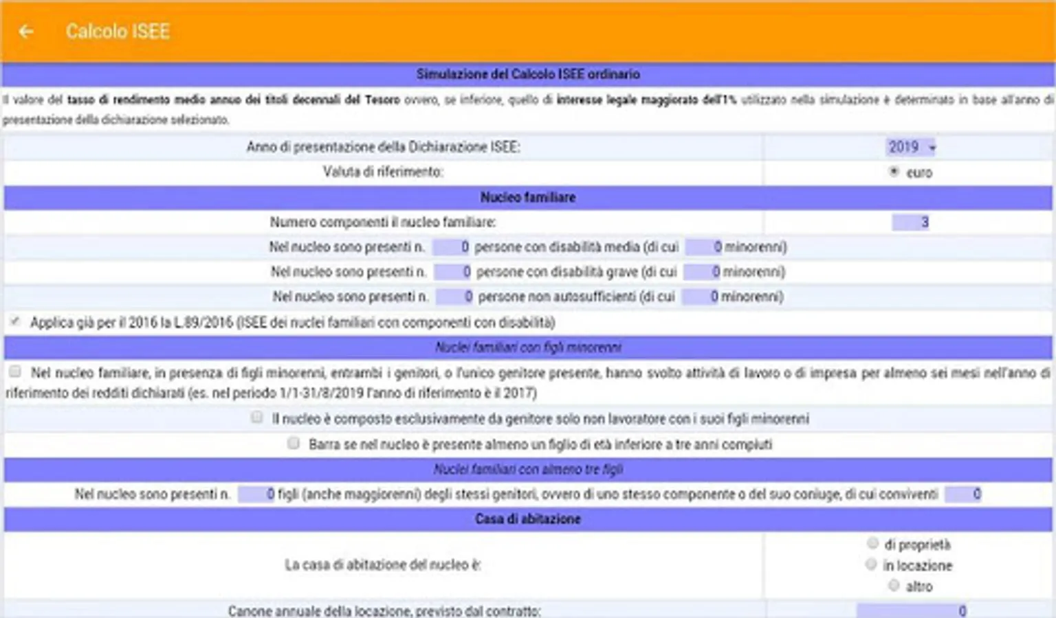 This application allows you to simulate (in absolutely offline mode) the calculation of the ISEE (it is the indicator of the equivalent economic situation that allows citizens to access, at favorable conditions, social benefits or public utility services) for the years ( signing of the Declaration) from 2001 to 2014 and the "ordinary" ISEE for the years (of presentation of the declaration) from 2015 to 2023.