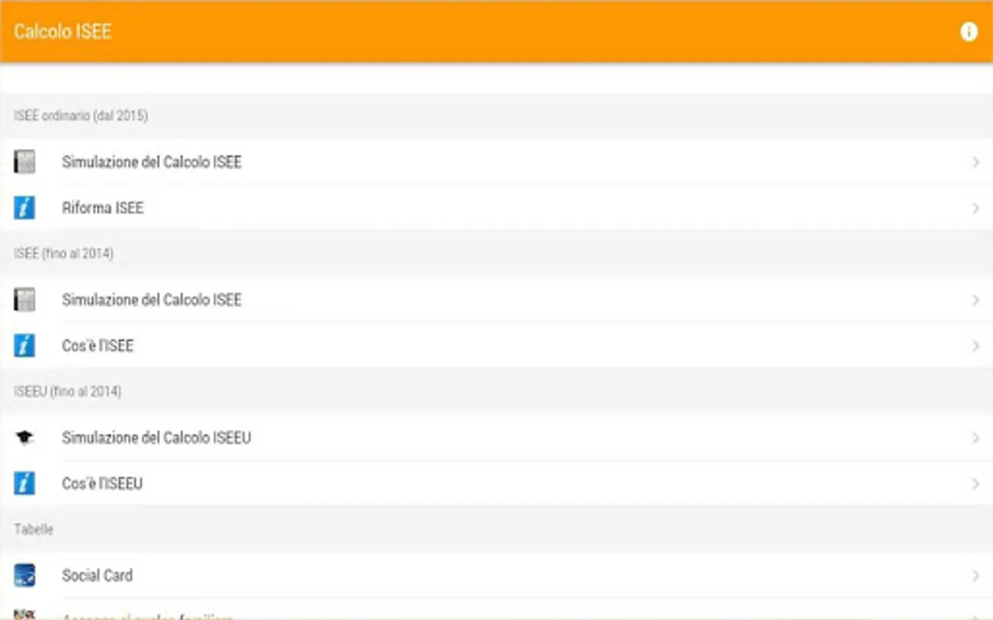The application also contains some tables of the most important social benefits and/or public utility services (Social Card/Ordinary Purchasing Card, Allowance for families with three minor children, Maternity allowance) with the related ISEE/ISE values .