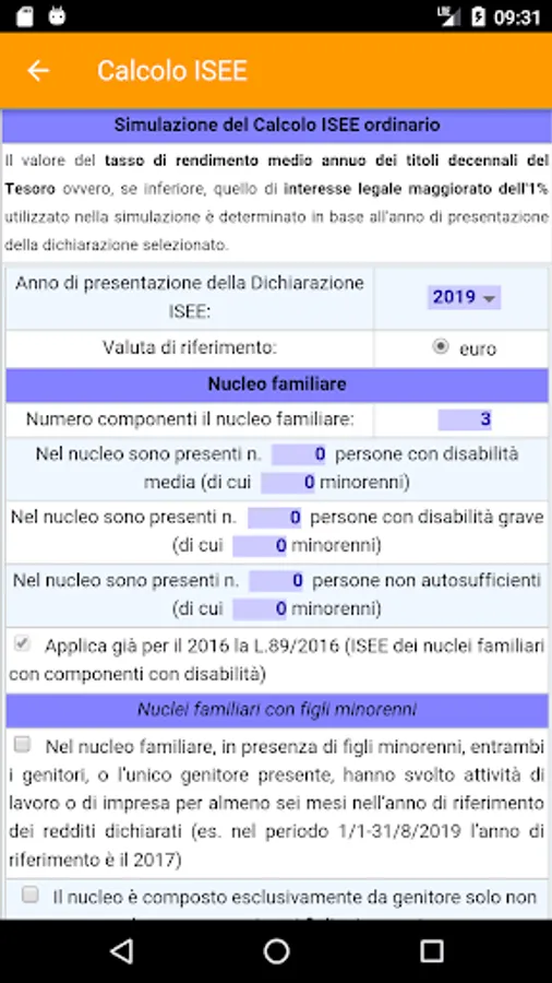 The app includes the transitional changes to the calculation of the ISEE of households with members with disabilities (article 2-sexies of the decree-law of 29 March 2016, n. 42, converted, with amendments, by the law of 26 May 2016, n. 89 , in force since 29 May 2016).