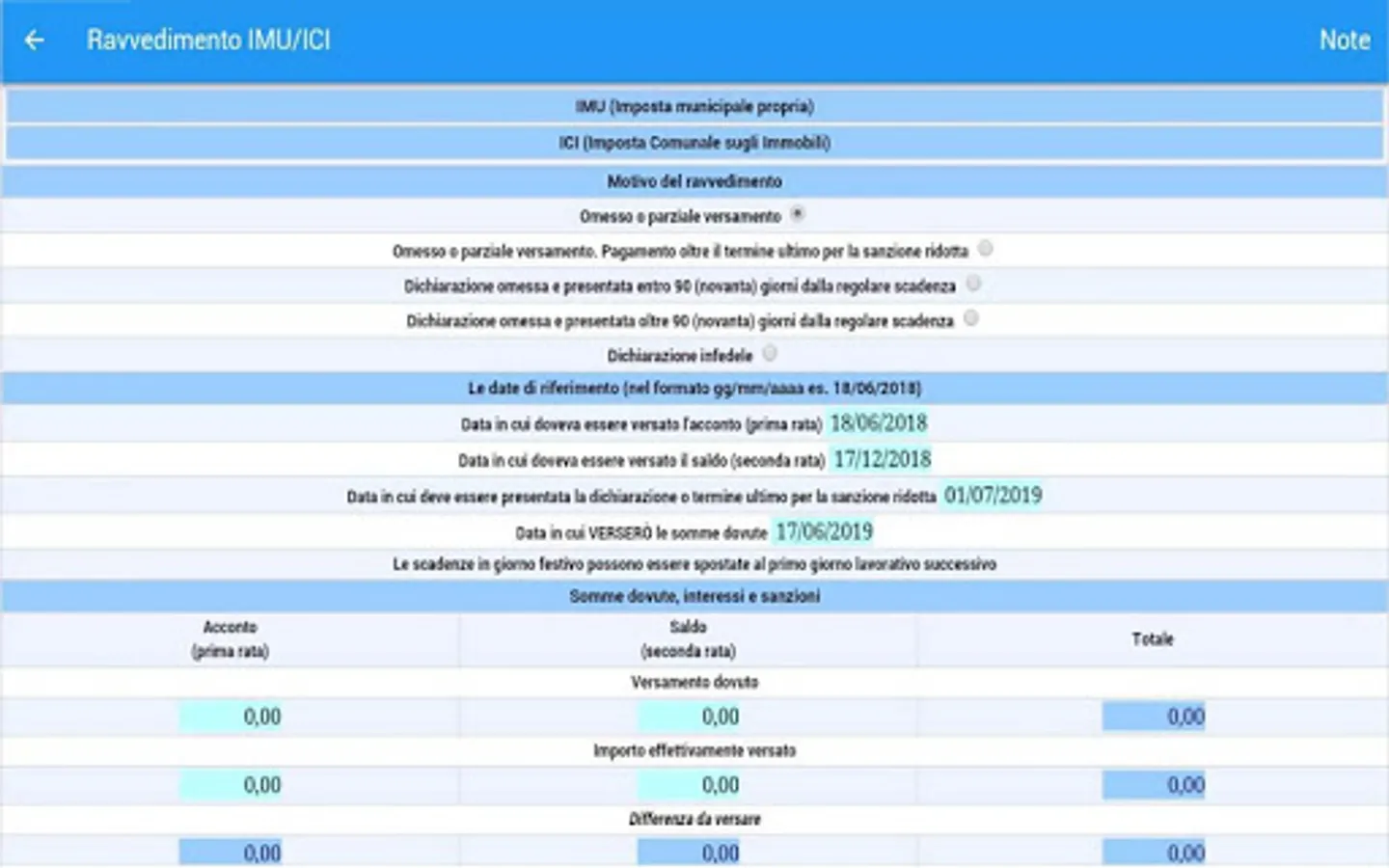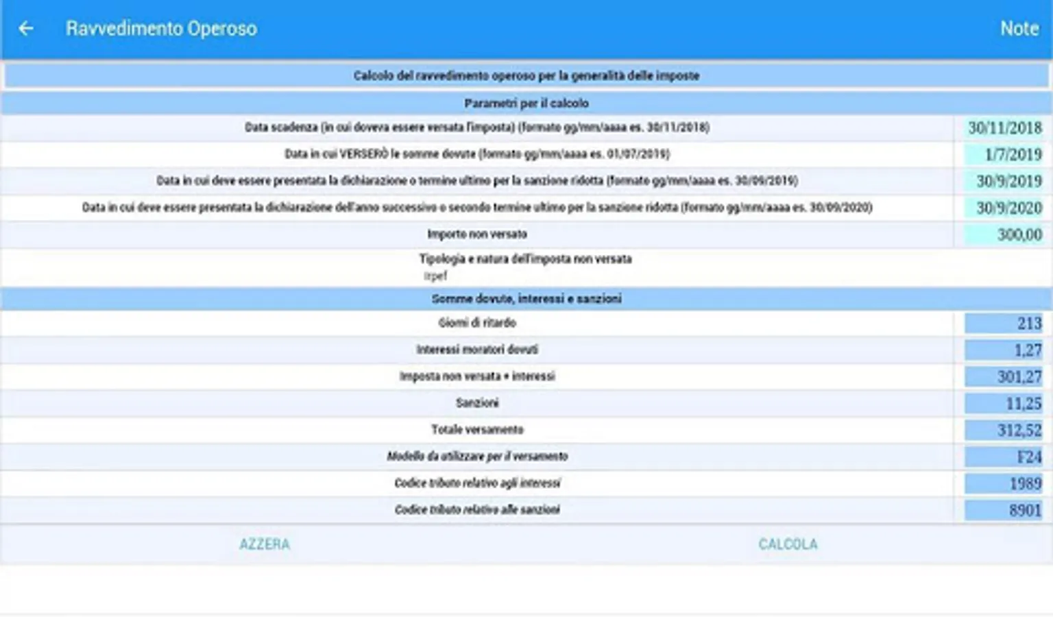• REVISION FOR THE GENERALITY OF TAXES: It allows you to determine the amount of interest and reduced penalties to regularize omitted or late payments relating to the generality of taxes (IRPEF, IRAP, IRES and other direct and indirect taxes).