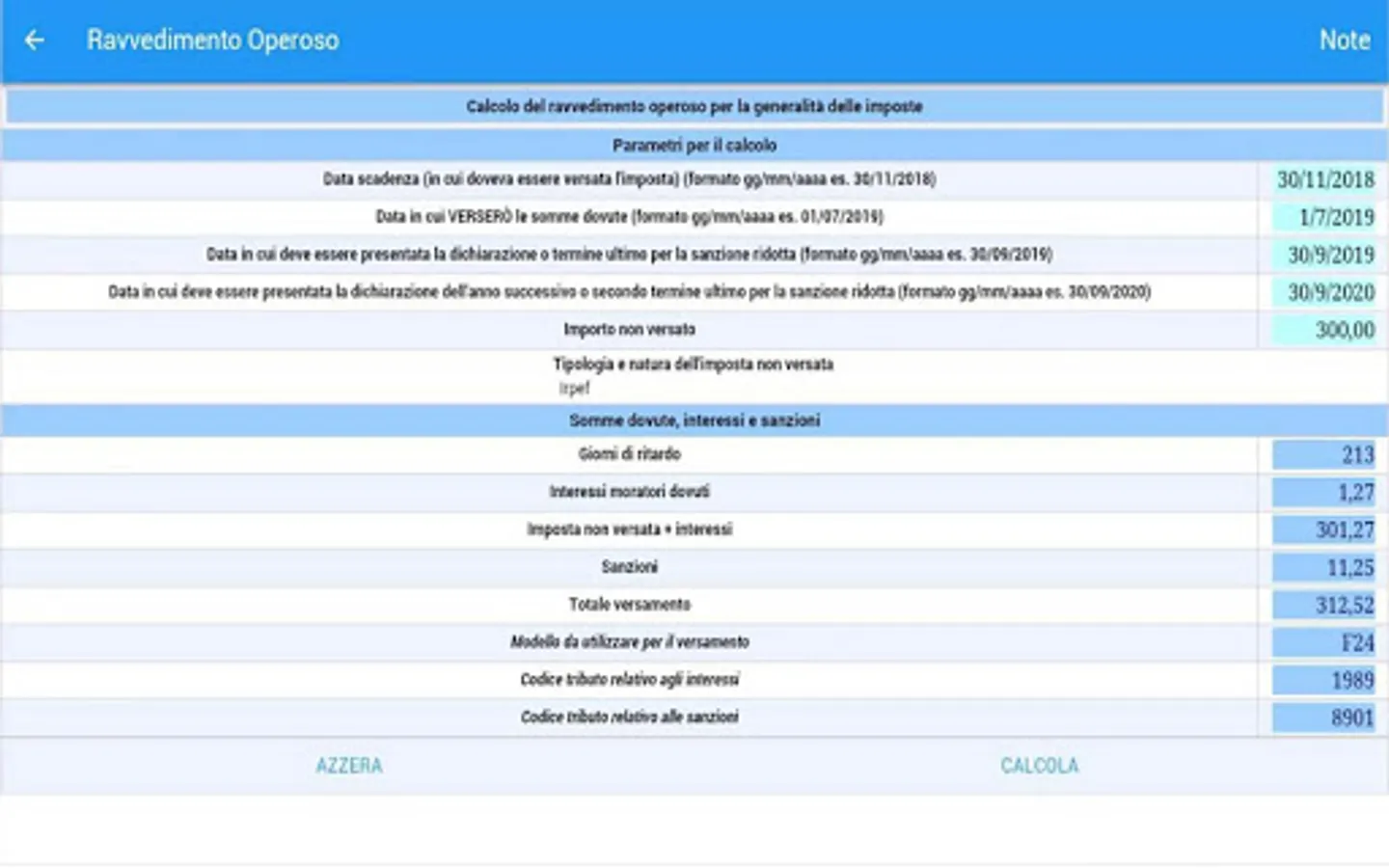 The CALCULATION OF OPERATIVE REVIEW application has been designed to simplify the calculations of the so-called "operated revision" through which the taxpayer can spontaneously regularize errors or tax offenses by paying the unpaid tax, interest at the legal rate and the related reduced penalties.