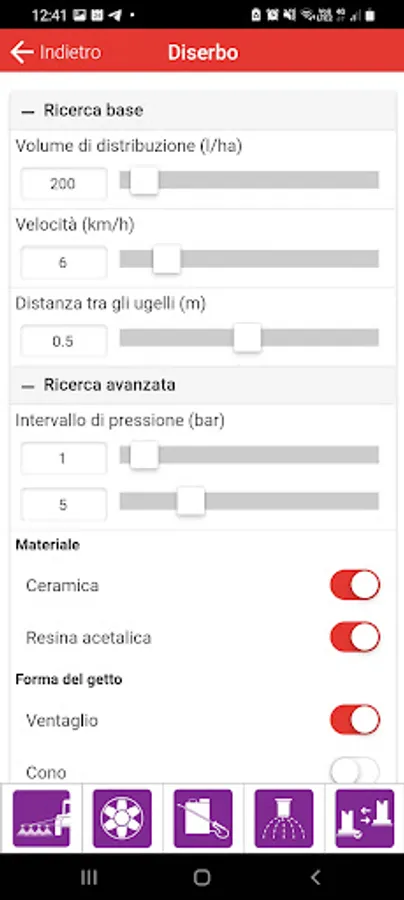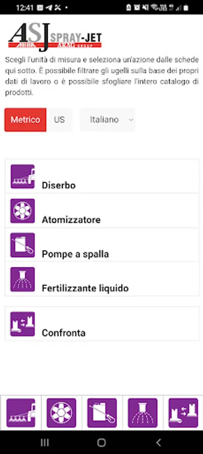 The ASJ NOZZLE configurator helps you to identify the correct nozzle according to your needs. The App allows you to select the unit of measurement and the action you are interested in: weeding, sprayer, backpack pumps and liquid fertilizer. Through a basic search or an advanced search, the application returns a list of nozzles in line with the work data entered.