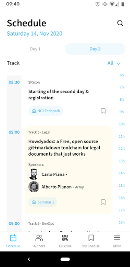 Use the SFScon app to consult the program, book your favorite speachs and learn about speakers and talks.