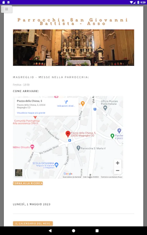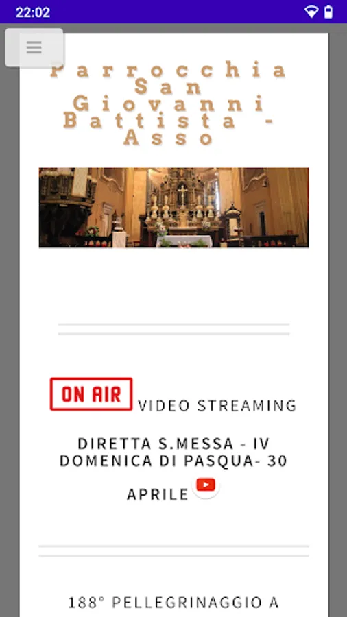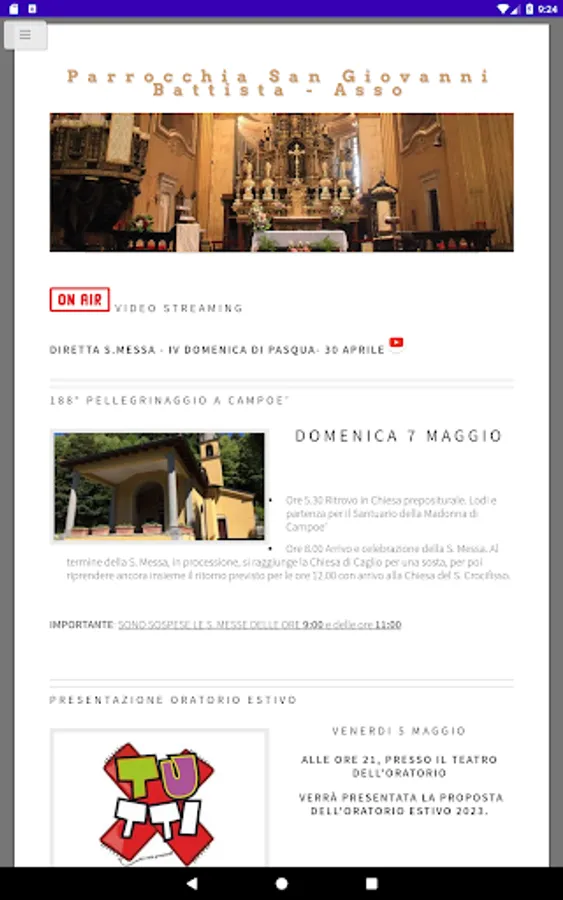 Application of the Parish of San Giovanni Battista of Asso (CO).