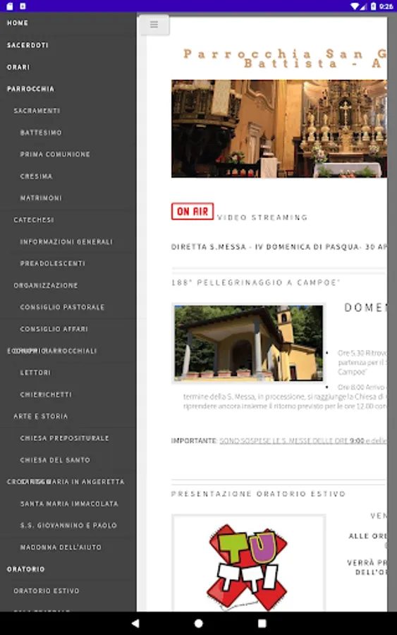 Weekly and monthly appointments, pastoral activity and groups active in the community. Oratory activities.