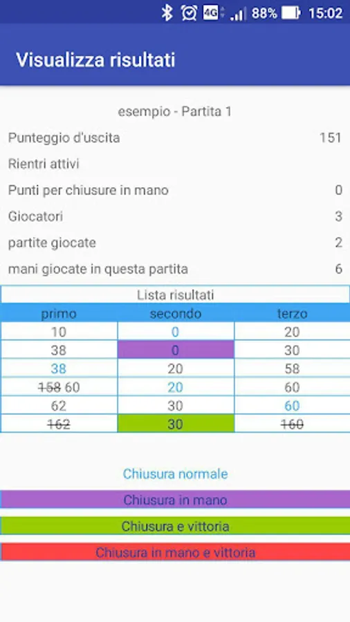 During the game you can cancel the last hand inserted in case of error in the indication of the scores, add players to the game already started (enter with the currently highest score) and remove players..
