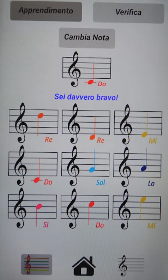 This application was pernsata for all those who want to improve their ability to read sheet music. There will be exercises and learning occurs and two levels of difficulty for each of these phases, with colored pentagram for easy and monochrome mode for that difficult.