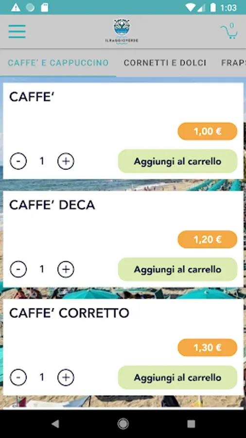With this app you can order food and drinks directly from the beach of Lido Raggio Verde in Agropoli thanks to the ShopTown.it service.