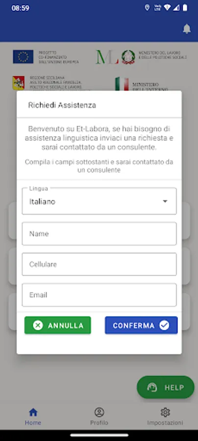 It is also possible to request linguistic assistance to complete the booking procedure for an appointment