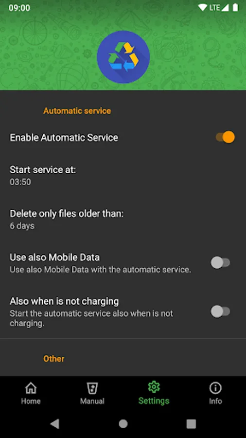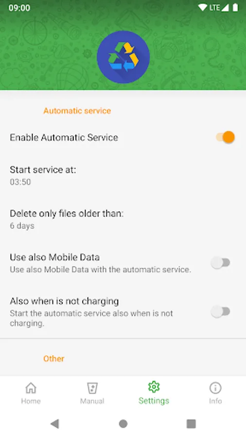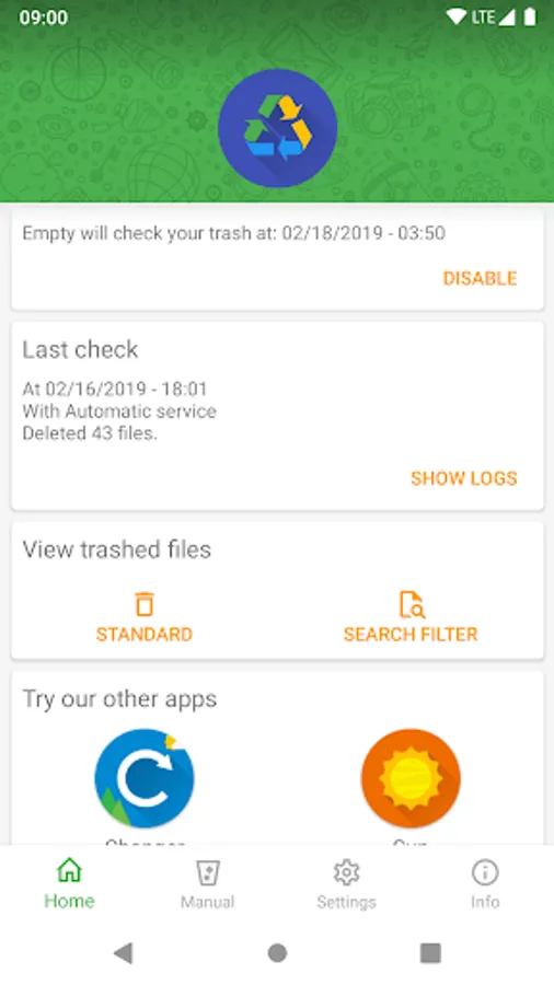 To avoid having to remember to empty the bin every week, I created this app. Simple but effective. The app will delete up to 10.000 files a day and will always start with the oldest files.